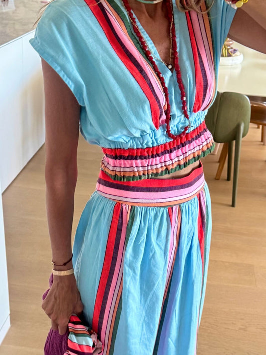 Striped Cap Sleeve Top and Skirt Set