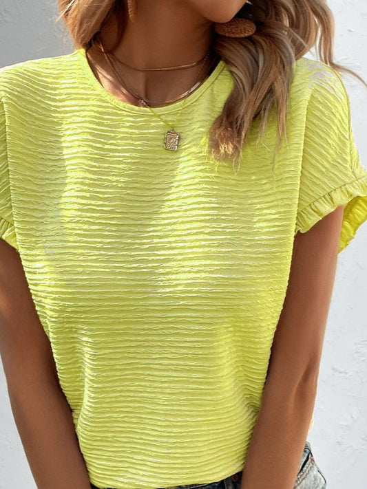 Textured Round Neck Flounce Sleeve Blouse